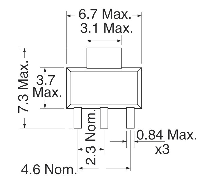 מארז: SOT-223 — מתאים להרכבה על לוחות מודפסים (PCB), כולל יישומים בצפיפות גבוהה