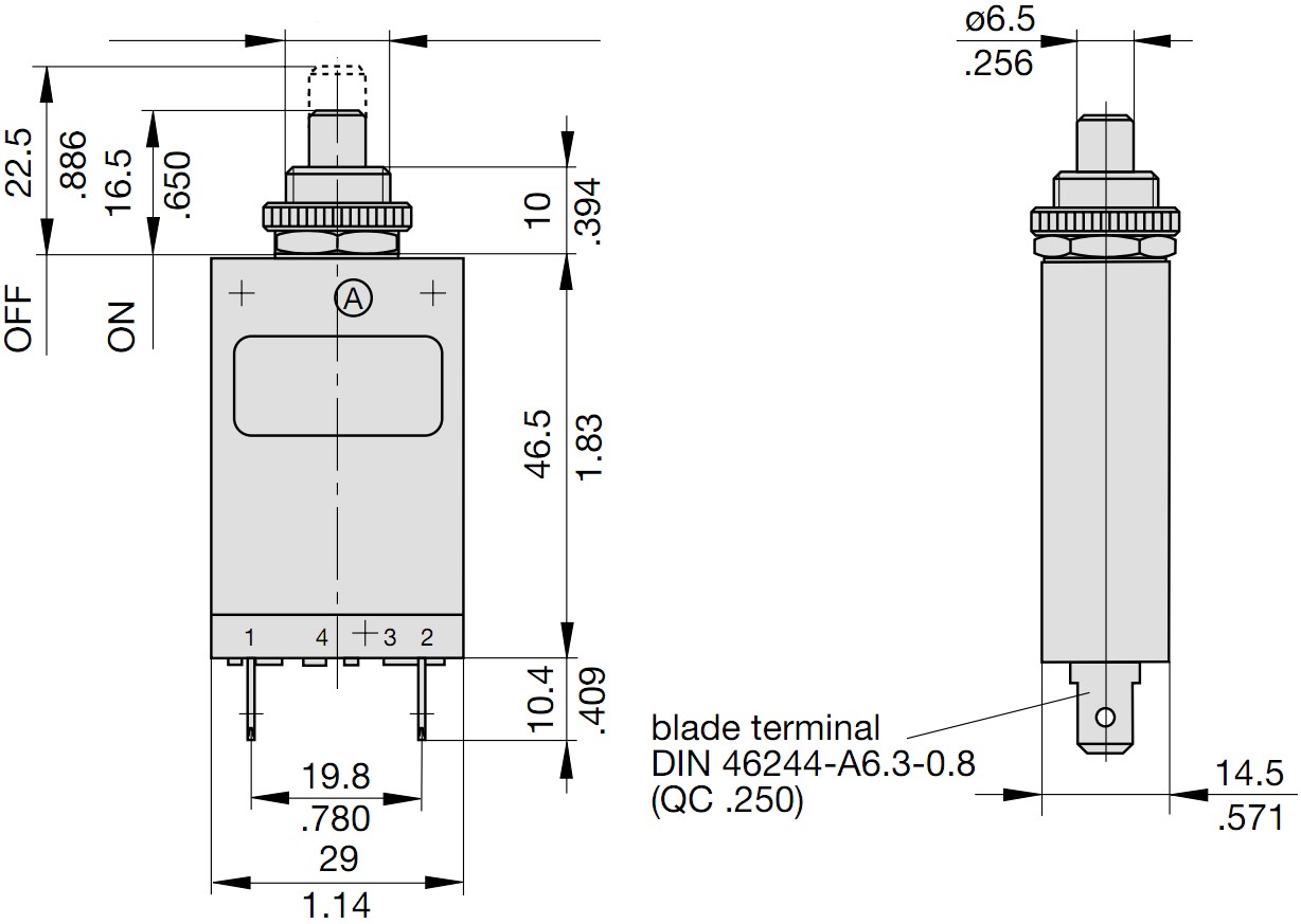 סוג: מפסק/מנותק מעגלים להגנה מפני עומס יתר