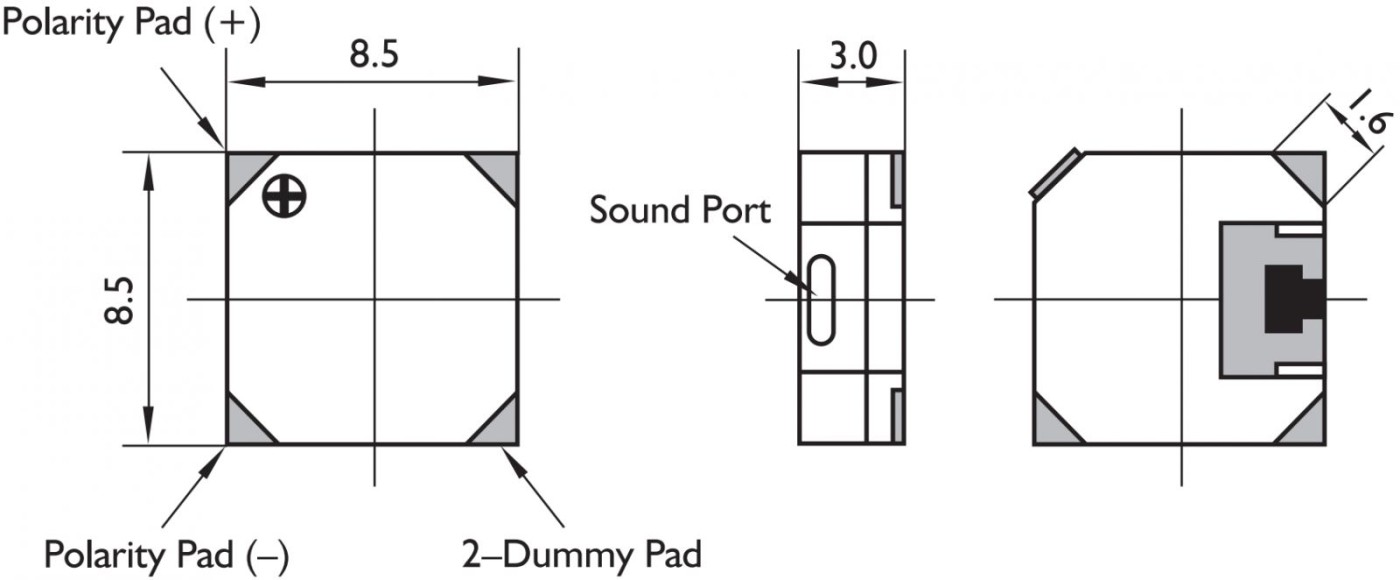 זמזם אלקטרו מכני למעגל מודפס - SMD - 2.5~4.5V - 85DB