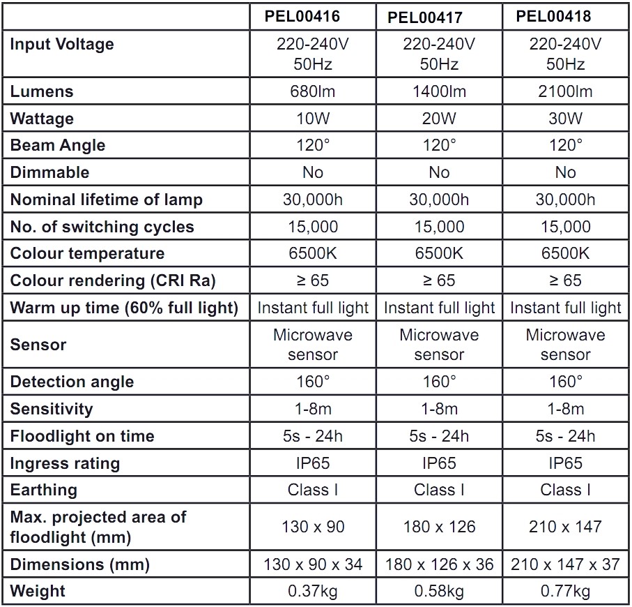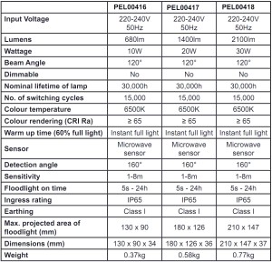 תאורת הצפה LED 10W עם חיישן - PRO ELEC PEL0416