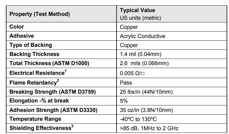 סרט על בסיס פח נחושת עם דבק מוליך, למטרות הארקה, מגע חשמלי, EMI/RFI-shielding והגנה על מעגלים אלקטרוניים.