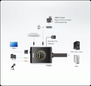ממתג KVM לשני מחשבים - USB / DVI / AUDIO