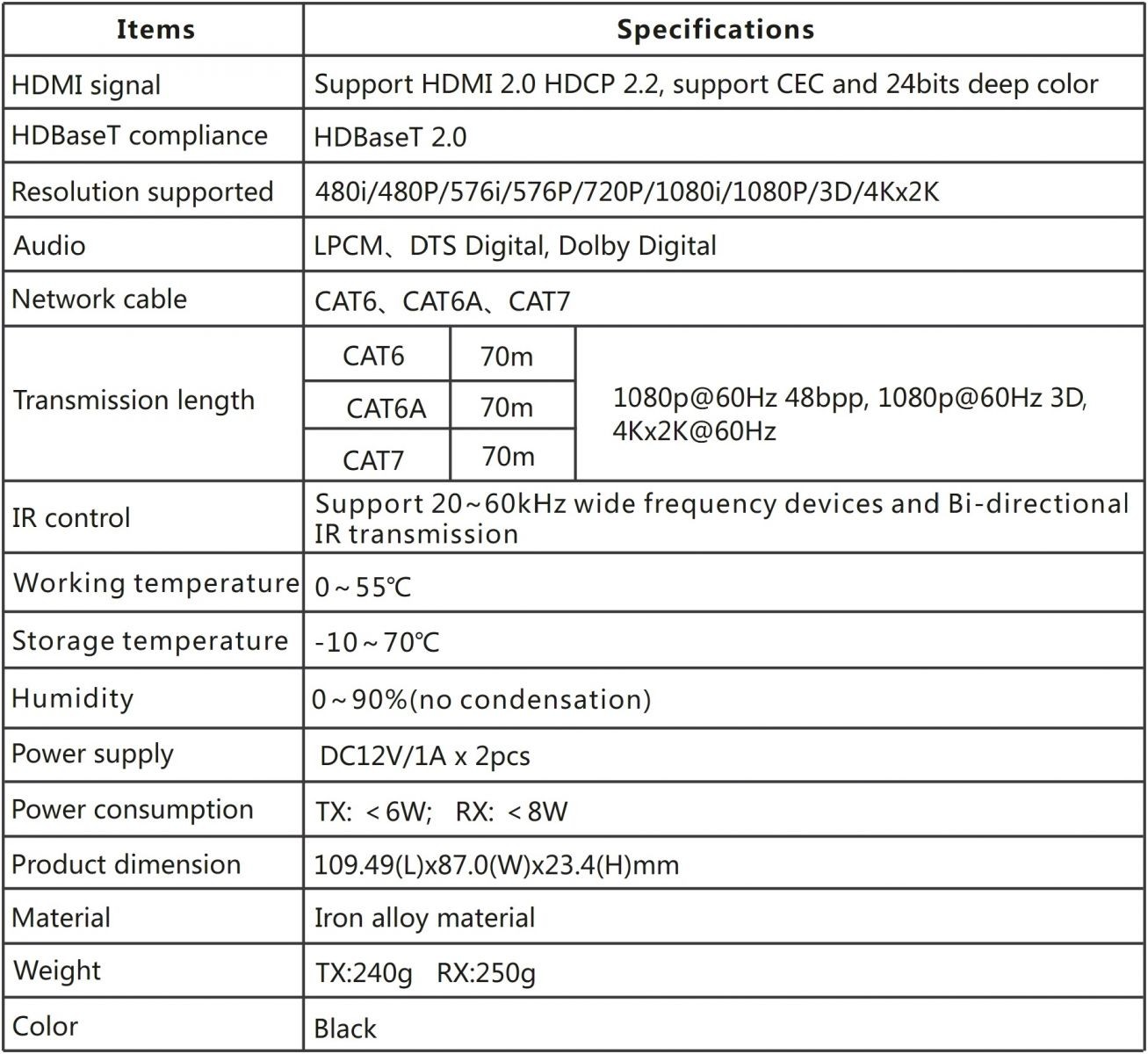 מאריך 4K UDH HDMI + IR & RS232 על CAT6 / CAT7 - עד 70 מטר