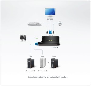 ממתג KVM לשני מחשבים - USB / VGA / AUDIO