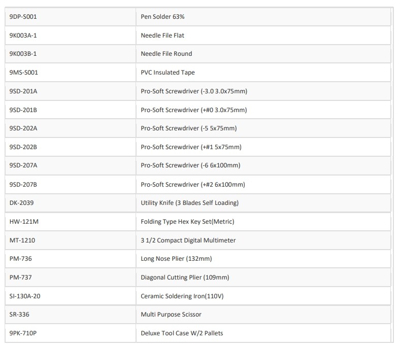 קיט כלי עבודה בסיסי לטכנאי אלקטרוניקה - PK-710KA